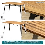 天然木の天板とスチール製の脚部の組み合わせは、カフェのような雰囲気のある長方形のテーブルです