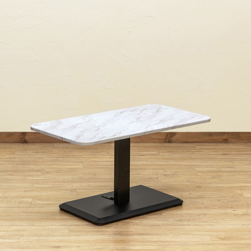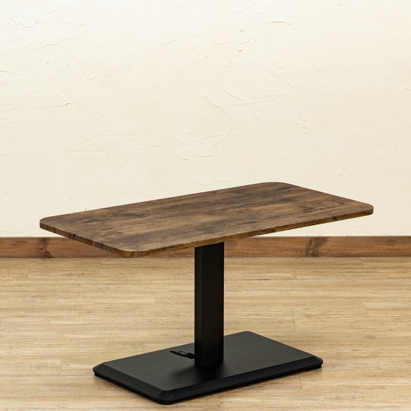 脚部のペダルで簡単に高さ調節ができる重厚感のある昇降式ダイニングテーブルです