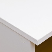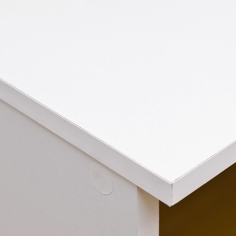 木目等を印刷したシート(紙の表面をコーティングしたもの)を表面に貼って仕上げています