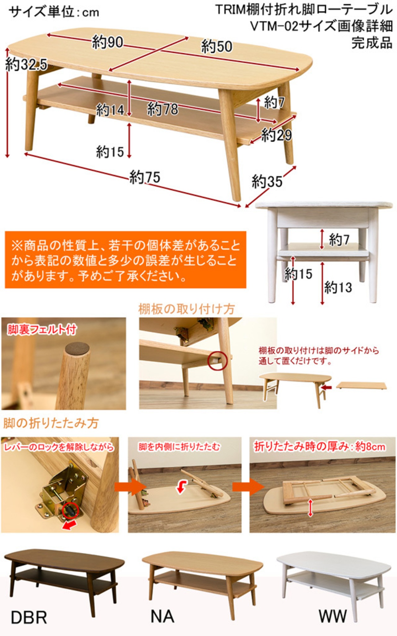 ダークブラウン(DBR)、ナチュラル(NA)、ホワイトウォッシュ(WW)の3色展開です