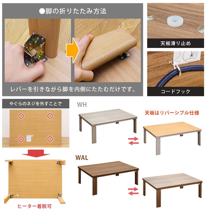 折れ脚フラットヒーターコタツ 長方形